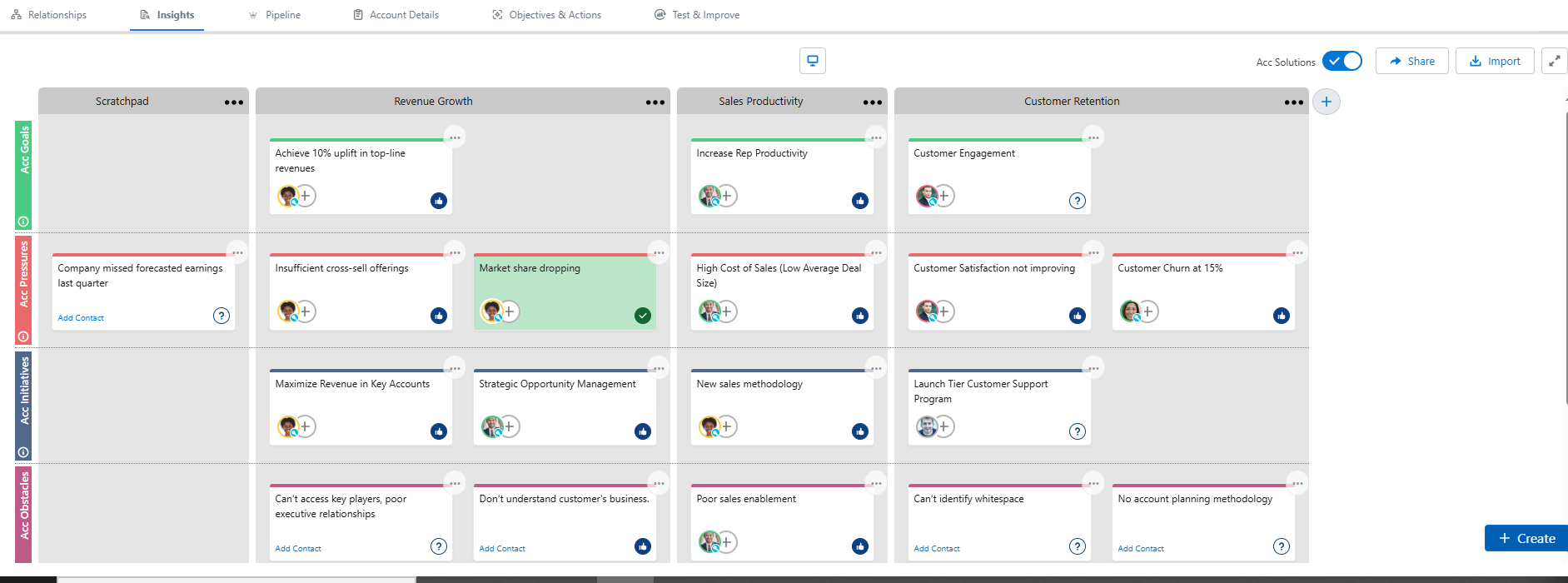- Import insights from other insight maps or the associated account's insight map (if you are working on an opportunity or division insight map).