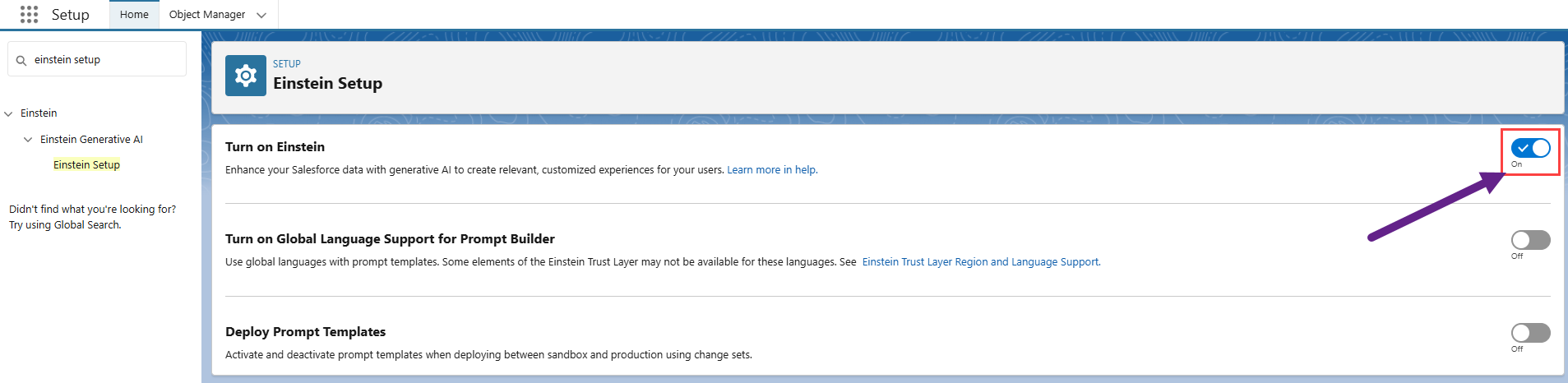 In Setup, find and select Einstein Setup.