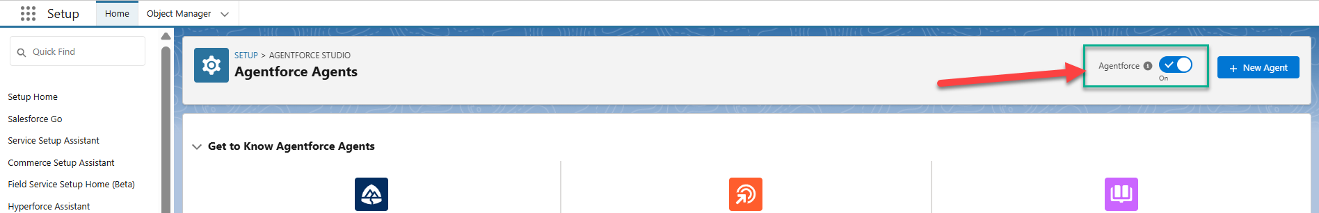 Turn on the Agentforce toggle - as indicated in the image below.