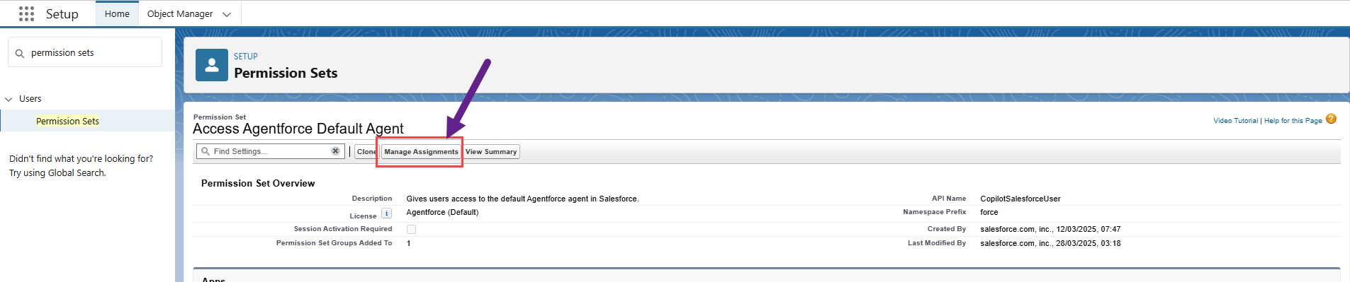 In Setup, find and select Permission Sets.