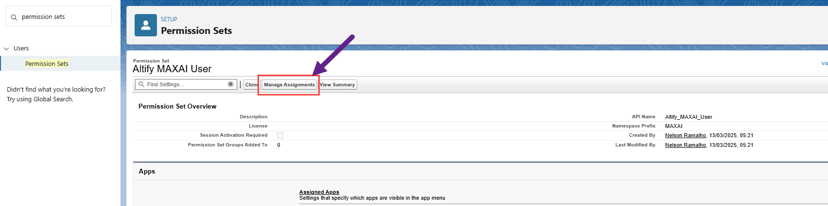 On the Permission Sets page, select the permission set 'Altify MAXAI User'.