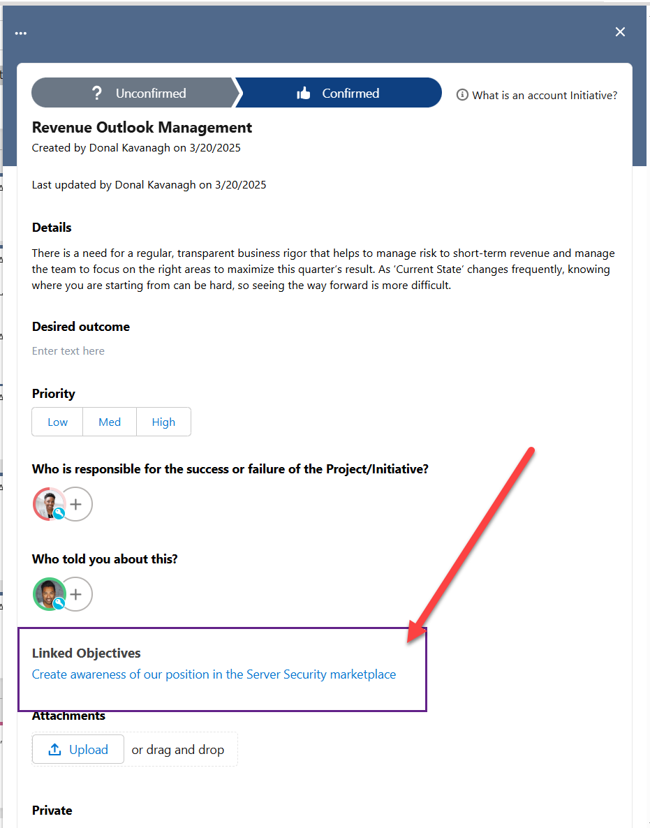 View account objectives that are associated with this insight (as indicated in the example below). Click the link to open the relevant objective in your account plan.