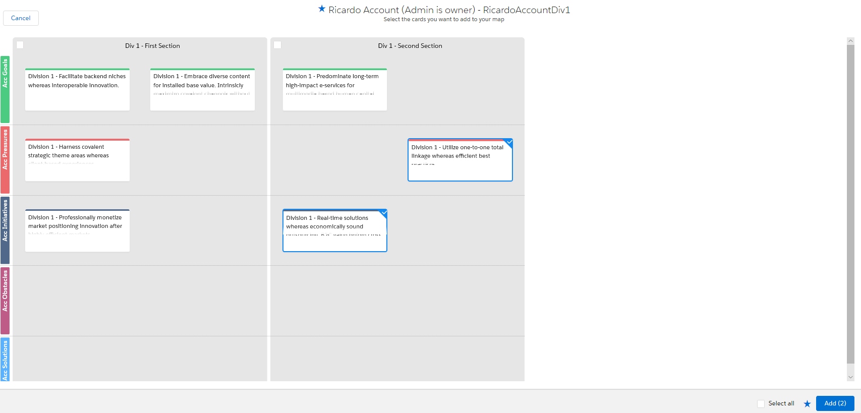 Sometimes there can be insights on another map that would be useful on your current map. For example, there might be another customer in the same industry and facing the same business pressures.