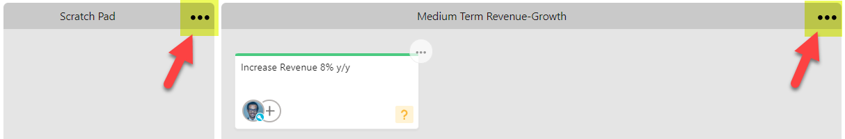 To move a section to the right or left, or delete an insight map section, click the options menu in the upper right corner of the section (as indicated below) and select Move Left, Move Right or Delete as appropriate.