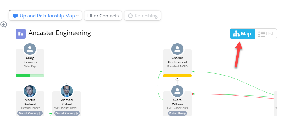 Normally, a relationship map is shown in 'Map View' format. This matches the map layout of the map in Salesforce: