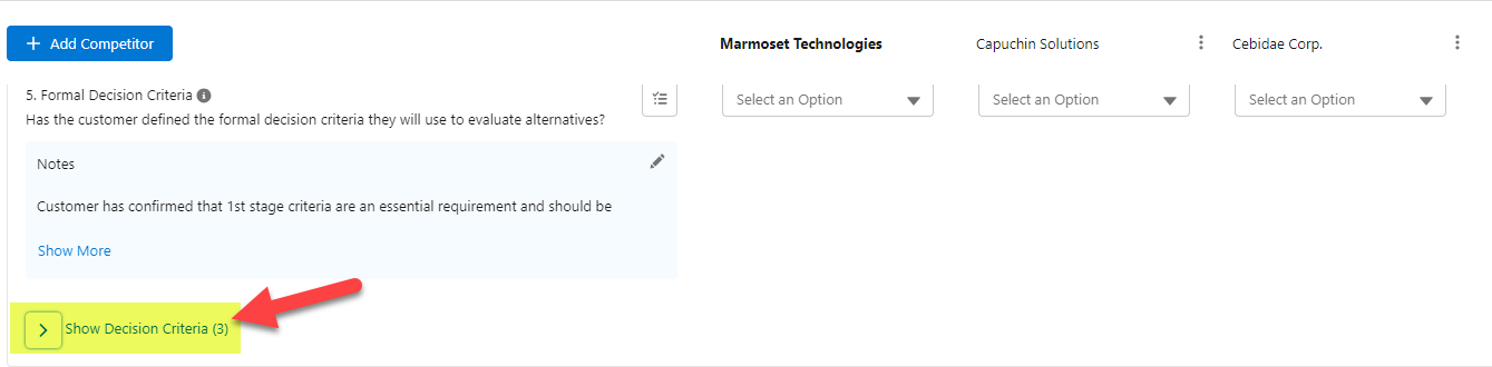 Click Show Decision Criteria under the Formal Decision Criteria or Informal Decision Criteria question - as shown in the example below.