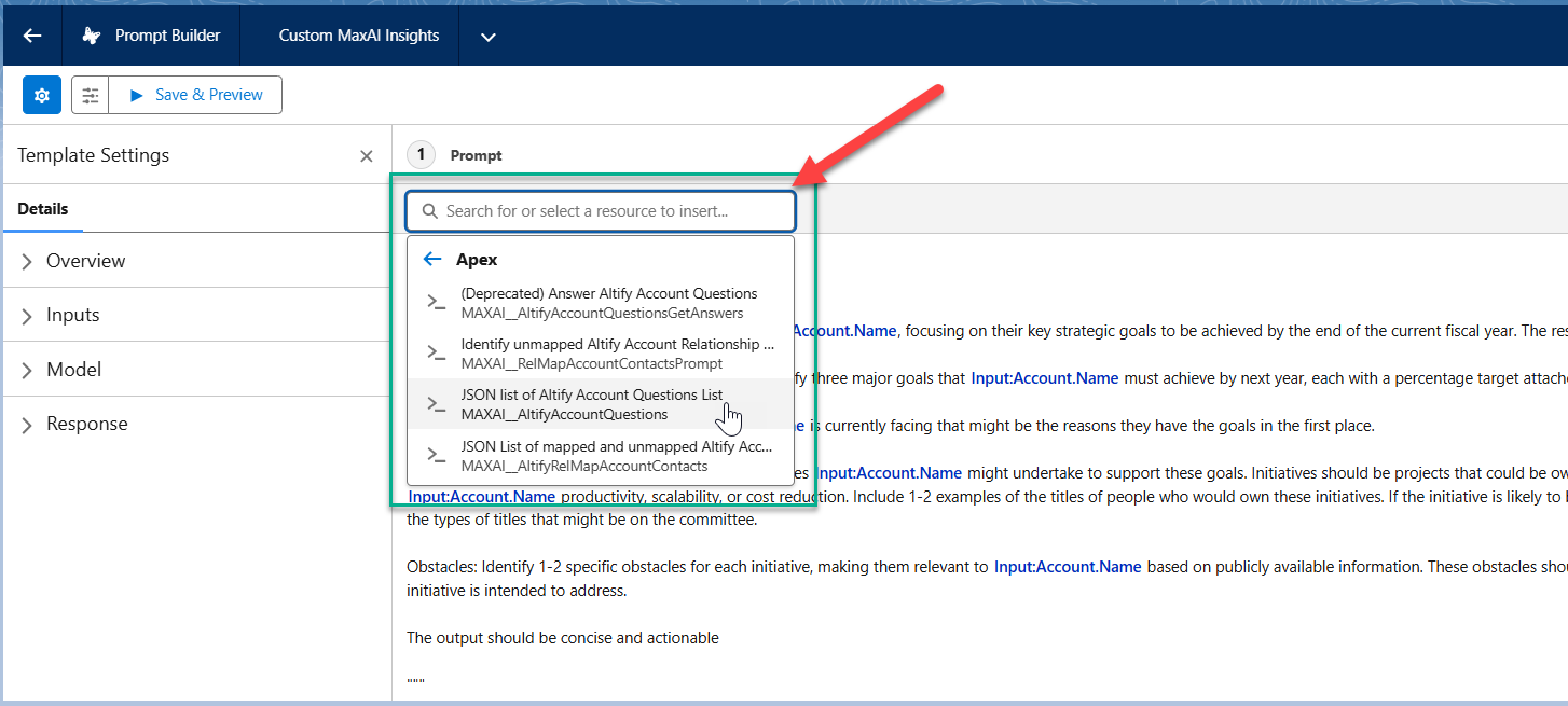 Altify makes the following Apex Resources available to help ground your prompt template:
