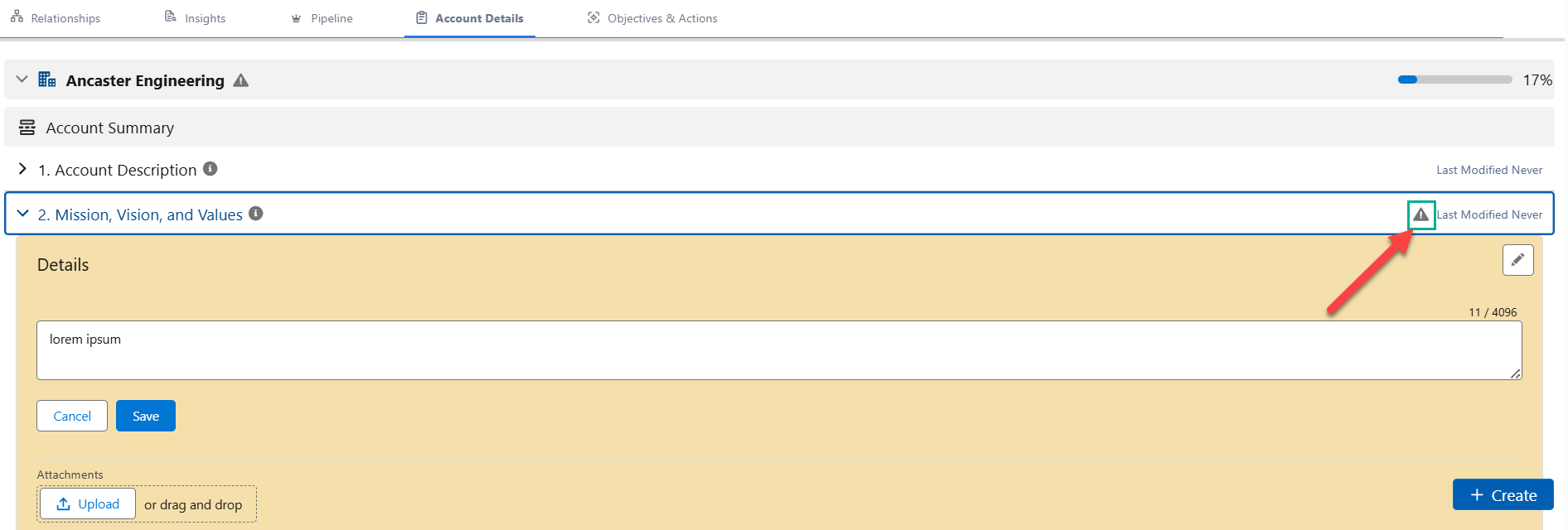 Tip: Briefly summarize the content of an attached file in the Details field to encourage engagement by team members.