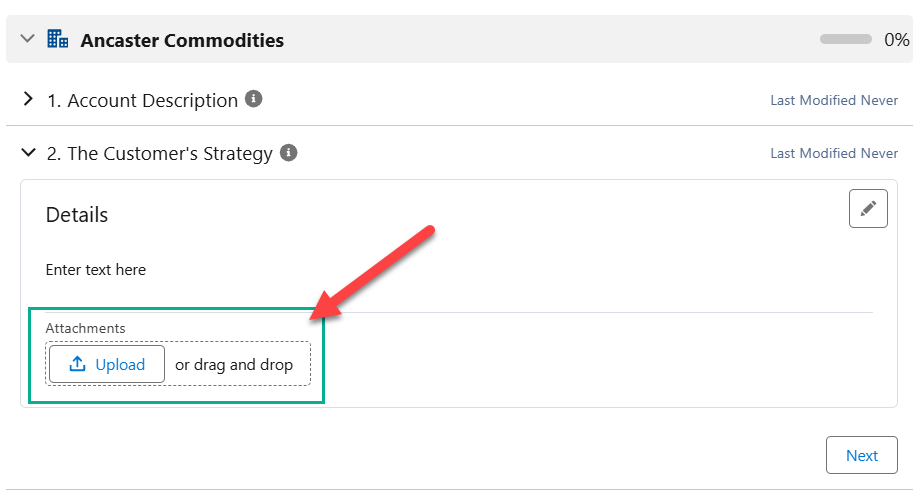 Upload an attachment or complete the Account Info section (if displayed) to supplement your answer, or click Next to move on to the next question.