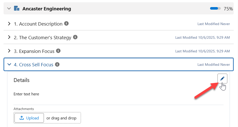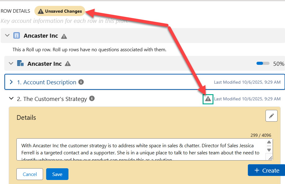 Note: Your answer is automatically displayed in other plans where the same question and account/division row occur. This includes Account Manager plans of another plan type and Altify Account Plans.