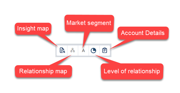 Note: The Relationship Map, Insight Map and Account Details icons are grayed out if no work has been done in these areas yet.