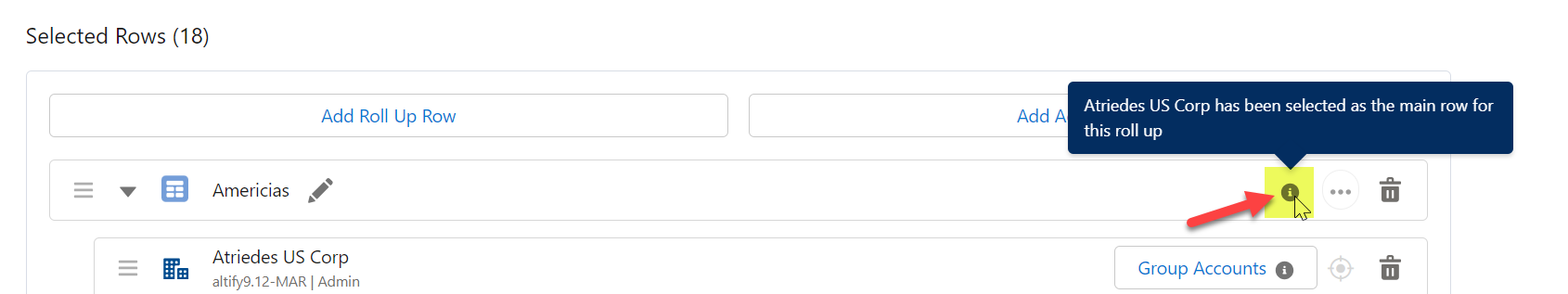 In this example, Atriedes US Corp is nominated as the account on the roll up row.