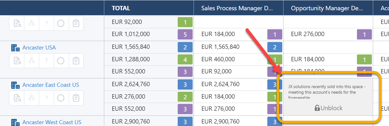 When you've determined that there's no possibility of selling a particular solution to a particular account, you may find it useful to 'block' the white-spaced intersection.