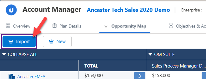 Click the Import button at the top of the opportunity map.