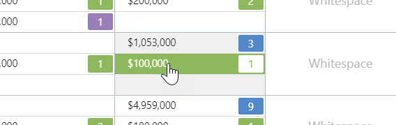 Intersections on an opportunity map are where you can view details of the opportunities added for the relevant solution and account/division. (Or in the case of a cell on a roll up row, details of opportunities for the relevant solution and all accounts/divisions within the roll up).