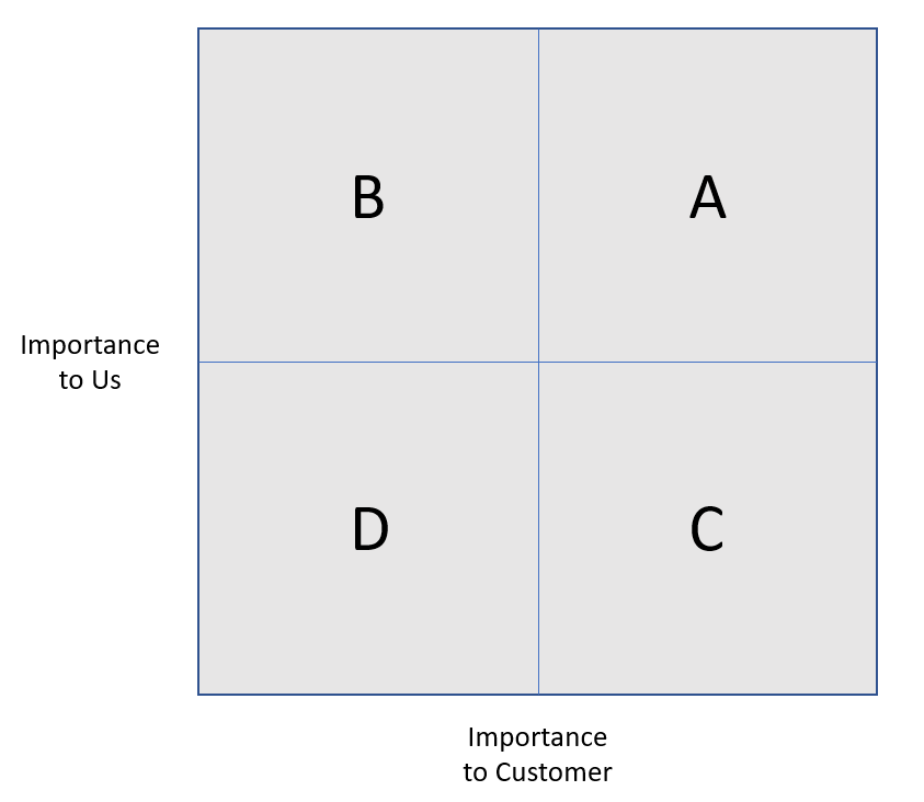 If you assess that a particular account is important to both parties – an 'A' -quadrant account – it's likely that it should have the focus of your revenue team.