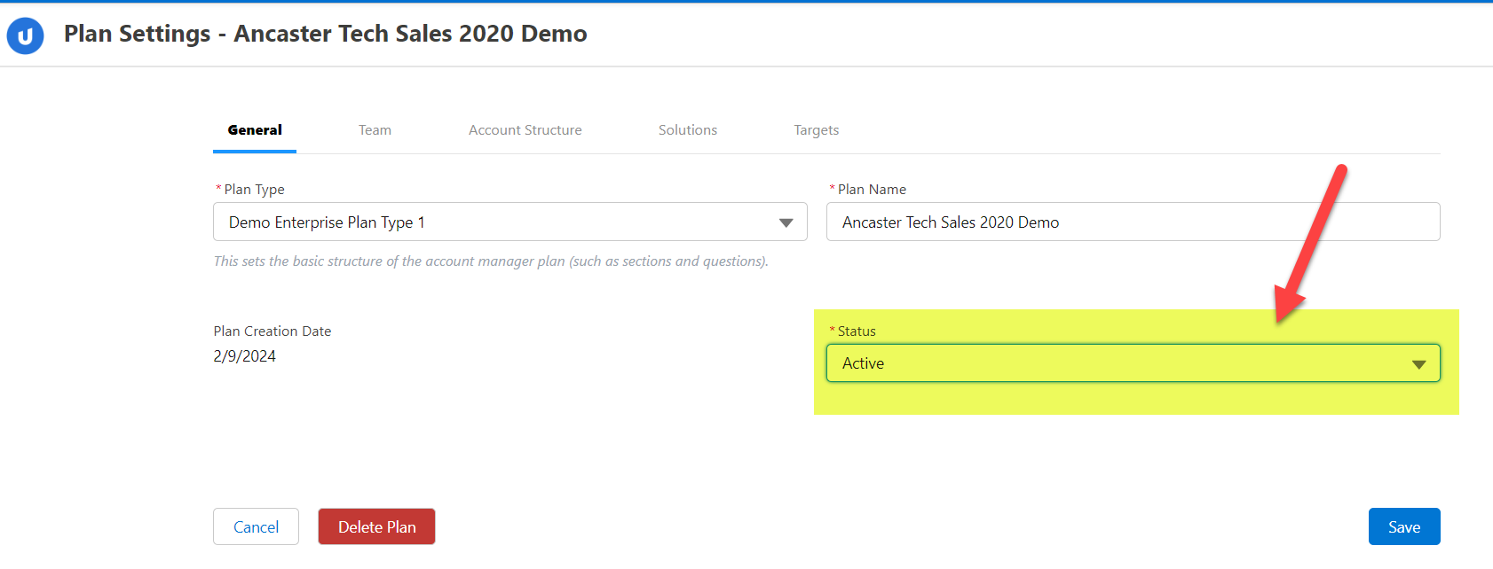 Deactivating an Account Manager plan means that Plan Settings are no longer editable. However, users can continue to make changes on the 'front-end' (e.g. import opportunities on the Opportunity Map, create Objectives, answer questions in Plan Details).
