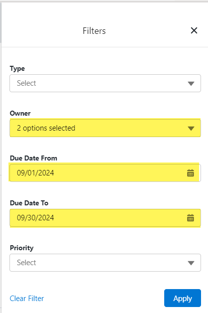 Only actions with the selected owner are displayed - select more than one owner if required.