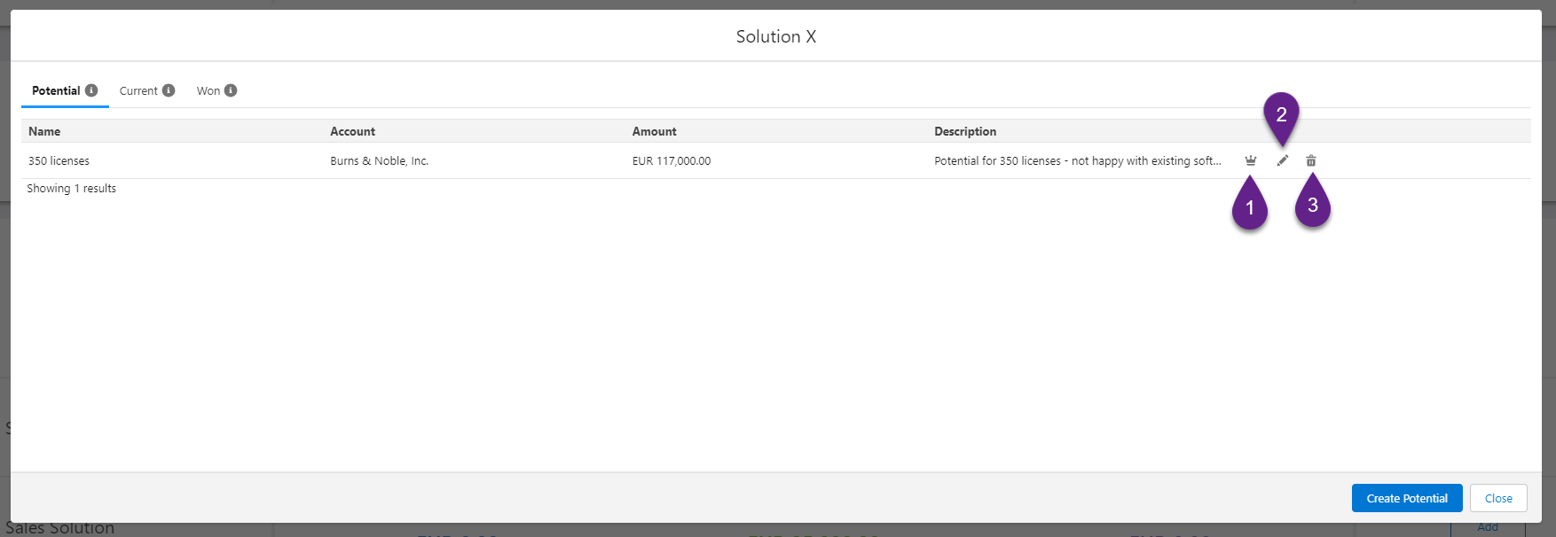 1. Click the potential value on the solution row where the potential opportunity is saved.
