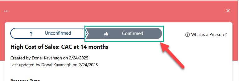 • Mark the insight as Confirmed by the customer (by clicking the button indicated below).