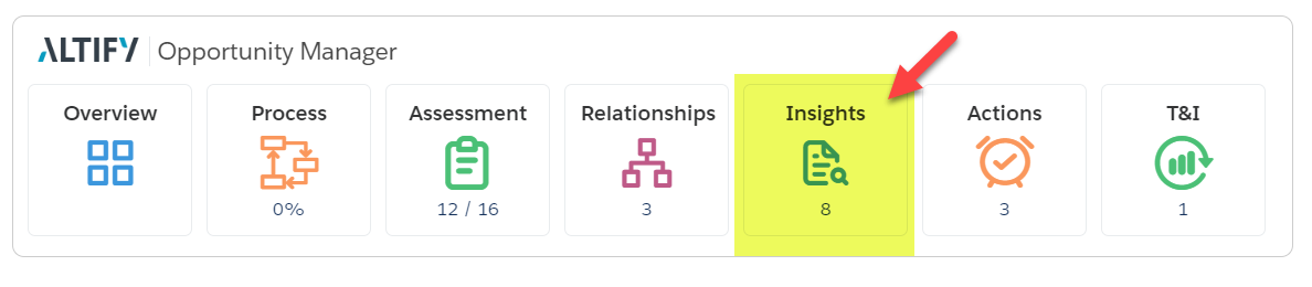 From within Opportunity Manager, click the Insights tab (activated in the example shown below).