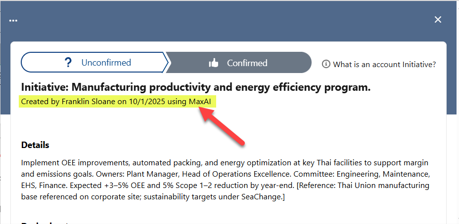 In both of the above scenarios, the insights generated by MaxAI are marked such as on the information panel (as shown in the example below).