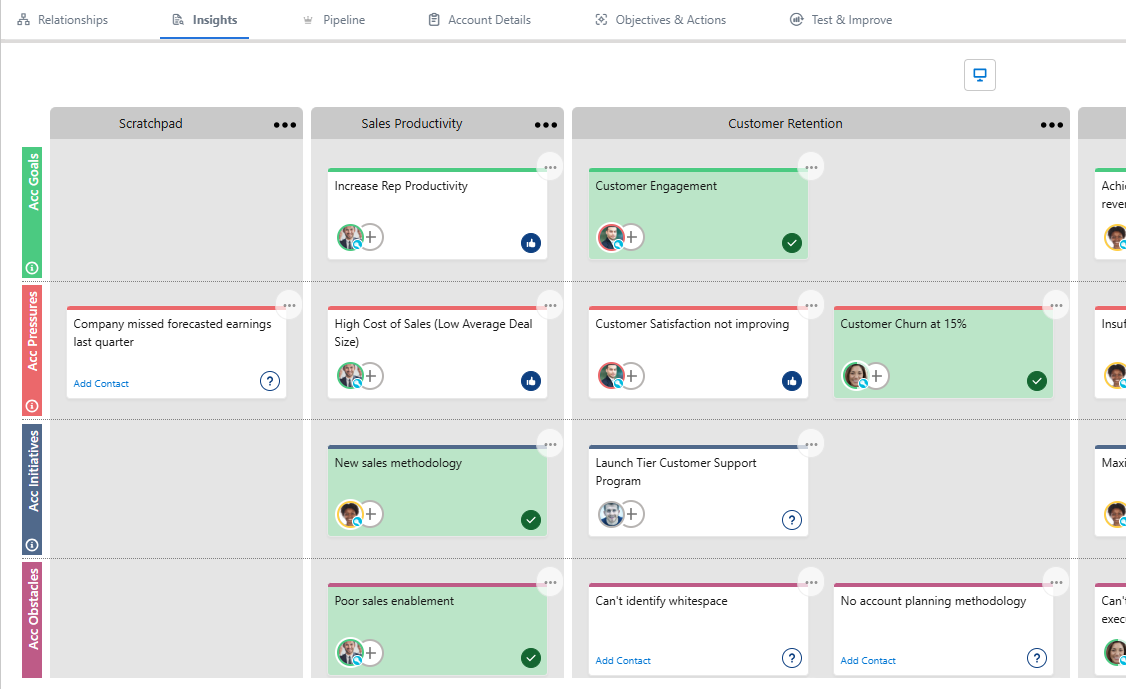 Validated insights ('Achieved', 'Resolved', etc.) are marked with a tick icon