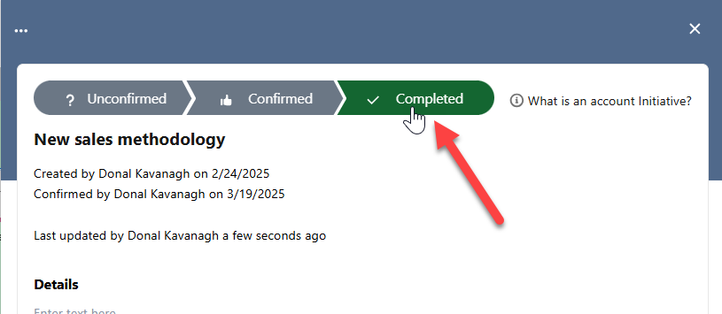 Initiative: 'Unconfirmed' → 'Confirmed' → 'Completed'