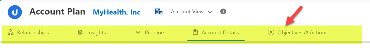 Note: If you open a relationship map from an opportunity map, you will see additional tabs (as highlighted below) that allow you perform account planning at the account level. For further information, see Altify Account Planning.
