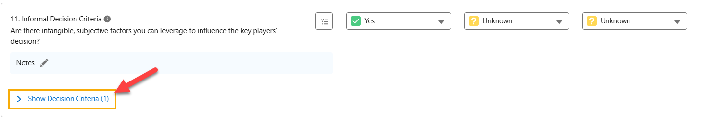 Click Show Decision Criteria under the Formal Decision Criteria or Informal Decision Criteria question - as shown in the example below.