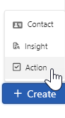 On any tab in Opportunity Manager, you can click the + Create button in the bottom right corner of the screen and then select Action (as shown in the example below).