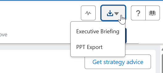 2. Click the Exports button the in top right of the page and select PPT Export - as shown in the example below.