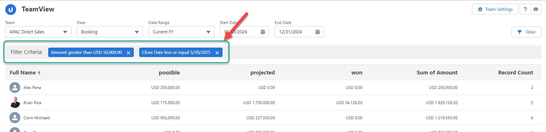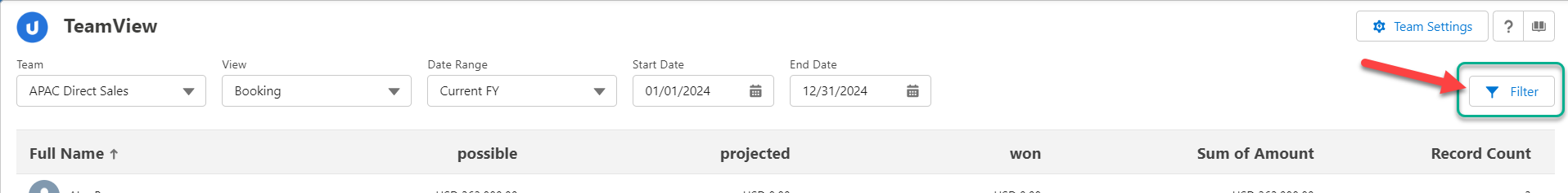 To apply your own custom filter to the TeamView data: