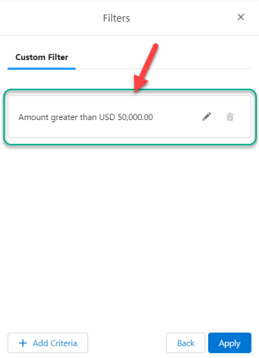 Note: Filter criteria are applied on an