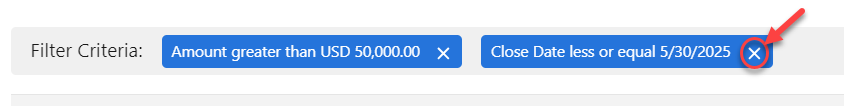 To remove a filter criterion in this view, click the X - as shown in the example below.