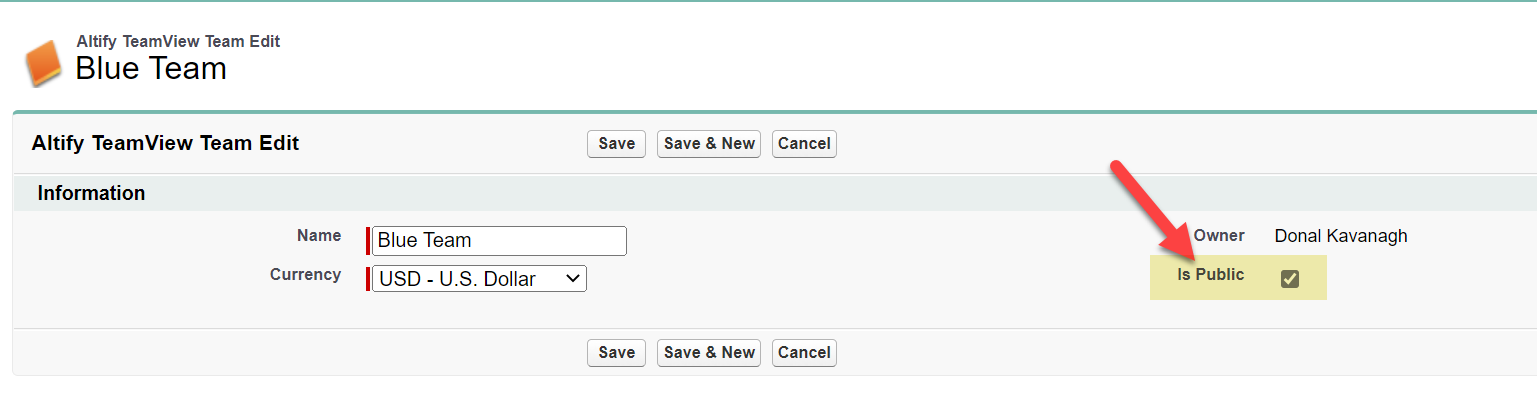 Team View Teamobject is set to Public Read Only, you can share the team with read/write permissions if you want specific users to be able to edit the team (see Sharing your Team below). -