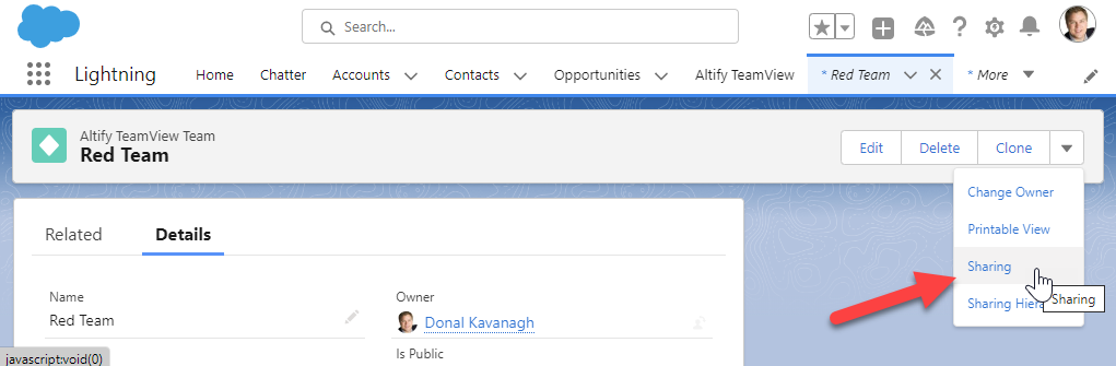Go to the Altify TeamView Team record for the relevant team.
