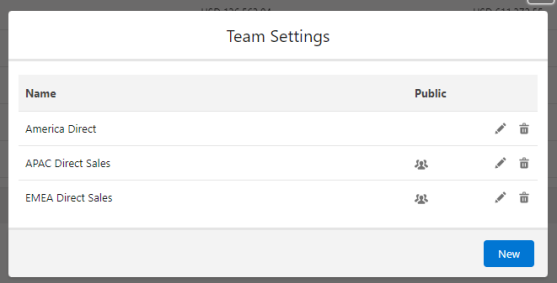 - On the Team Settings dialog, click New.